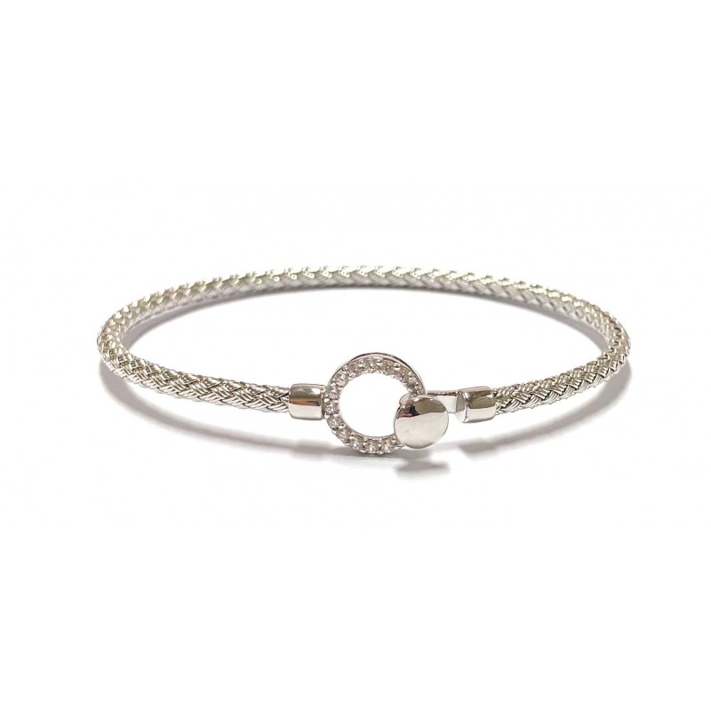 Bracelet VALENZI en argent 925/1000 rhodié avec fils tressé d'une largeur de 3 mm, fermoir crochet avec anneaux sertis d'oxydes de zirconium. Poids: 5g