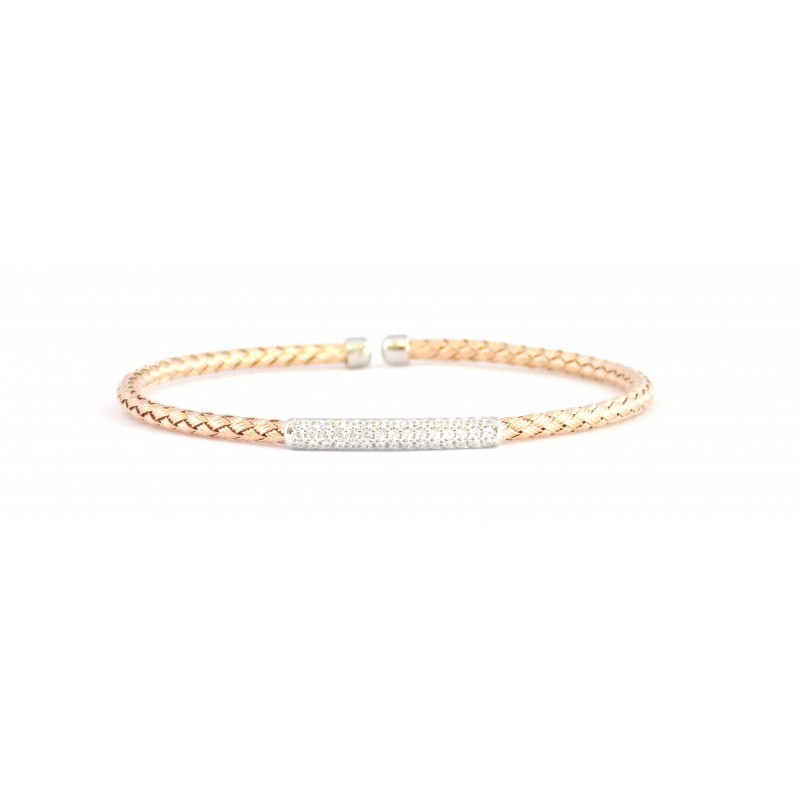 Bracelet VALENZI en argent 925/1000 rhodié avec fils tressé rose d'une largeur de 3 mm, ouverture ajustable. Barrette sertis d'oxydes de zirconium. Poids: 5.14g