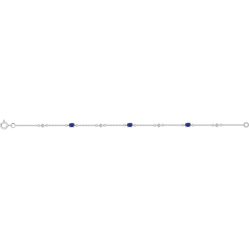 Bracelet en argent 925/1000 rhodié avec spinelles bleus et oxydes de zirconium blancs. Fermoir mousqueton. Longueur ajustable à 15cm, 16cm et 18cm. Poids: 1.20g