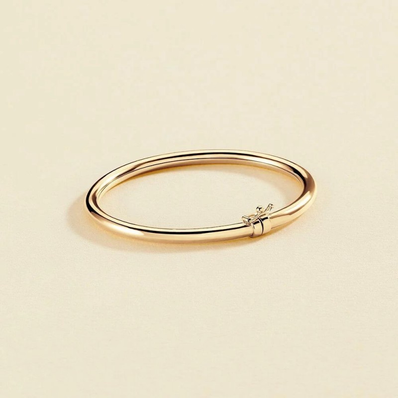 Bracelet AGATHA en argent et plaque or jonc lisse. Fermoir huit de sécurité. Taille unique.