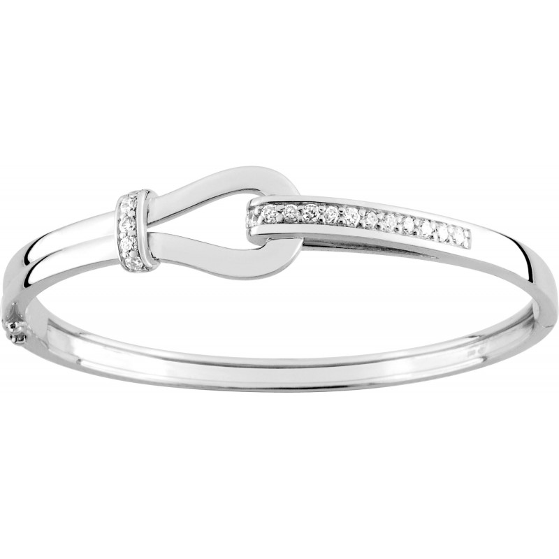 Bracelet en argent 925/1000 rhodié jonc ouvrant sertis d'oxydes de zirconium. Fermoir huit de sécurité. Taille unique. Poids: 14g