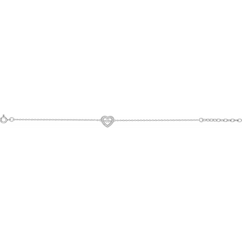 Bracelet en argent 925/1000 rhodié avec un coeur serti d'oxydes de zirconium et oxyde de zirconium centrale mobile. Fermoir mousqueton. Longueur ajustable de 16cm à 18cm. Poids: 1.60g