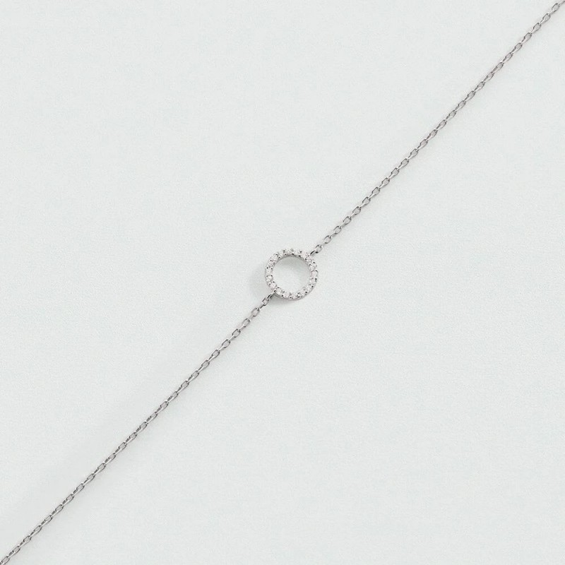 Bracelet AGATHA en argent 925/1000 rhodié avec un rond sertis d'oxydes de zirconum. Fermoir mousqueton. Longueur ajustable de 16cm à 19cm.