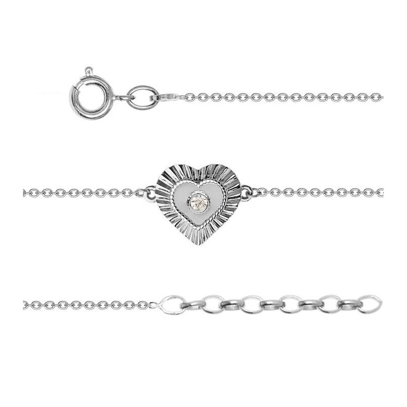 Bracelet en argent 925/1000 rhodié sertis d'oxydes de zirconium. Fermoir anneau ressort. Longueur ajsutable de 16cm à 19cm. Poids: 1.94g