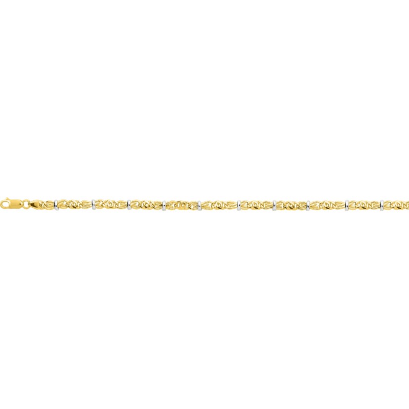 Bracelet en or 375/1000 jaune avec motifs en or 375/1000 blanc. Fermoir mousqueton. Longueur 18cm. Poids: 5.60g