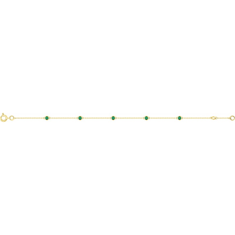 Bracelet en or 375/1000 jaune sertis d'emeraudes sur chaine. Fermoir anneau ressort. Longueur ajustable de 16cm à 18cm. Poids: 1.05g