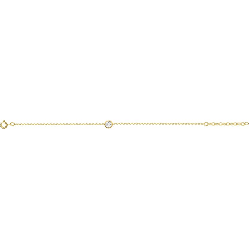 Bracelet en plaque or sertis d'un oxyde de zirconium. Fermoir anneau ressort. Longueur ajustable de 16cm à 18cm.