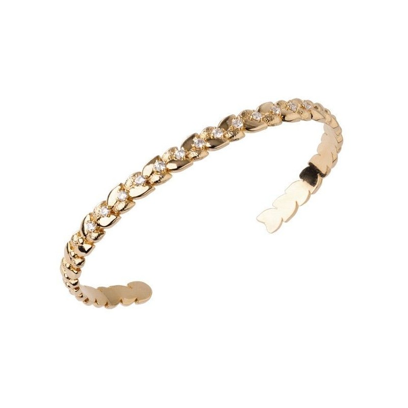 Bracelet en plaque or rigide sertis d'oxydes de zirconium. Taille ajustable