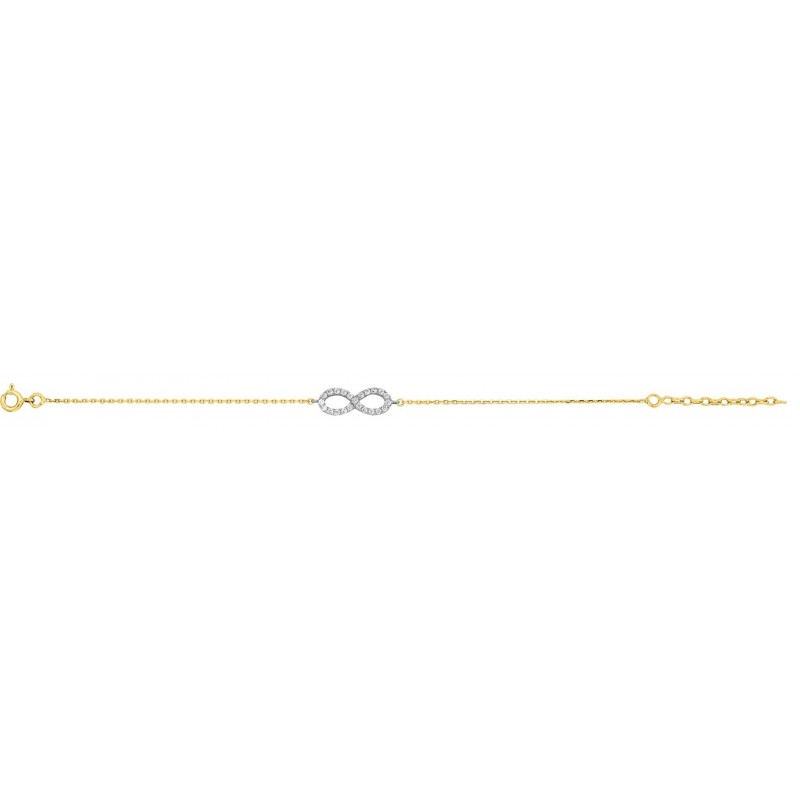 Bracelet en plaque or avec infini serti d'oxydes de zirconium. Fermoir anneau ressort. Longueur ajustable à 16cm et 18cm.