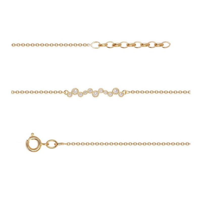 Bracelet en plaque or sertis d'oxydes de zirconium. Fermoir anneau ressort. Longueur ajustable de 16cm à 18cm.