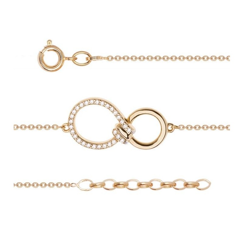Bracelet en plaque or sertis d'oxydes de zirconium. Fermoir anneau ressort. Longueur ajustable de 18cm à 20cm.