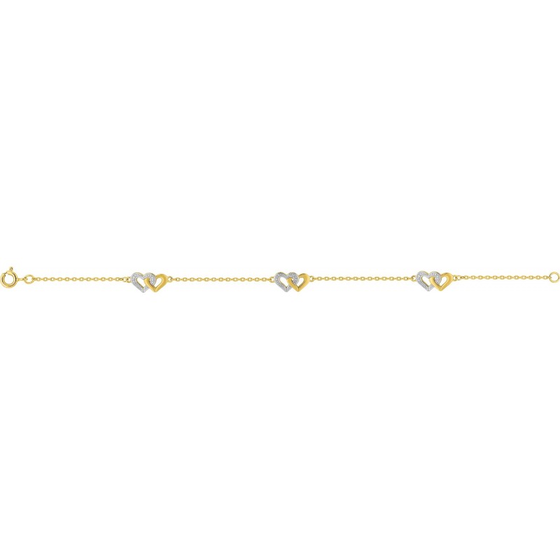 Bracelet en plaque or avec coeurs bicolores. Fermoir anneau ressort. Longueur 18cm.