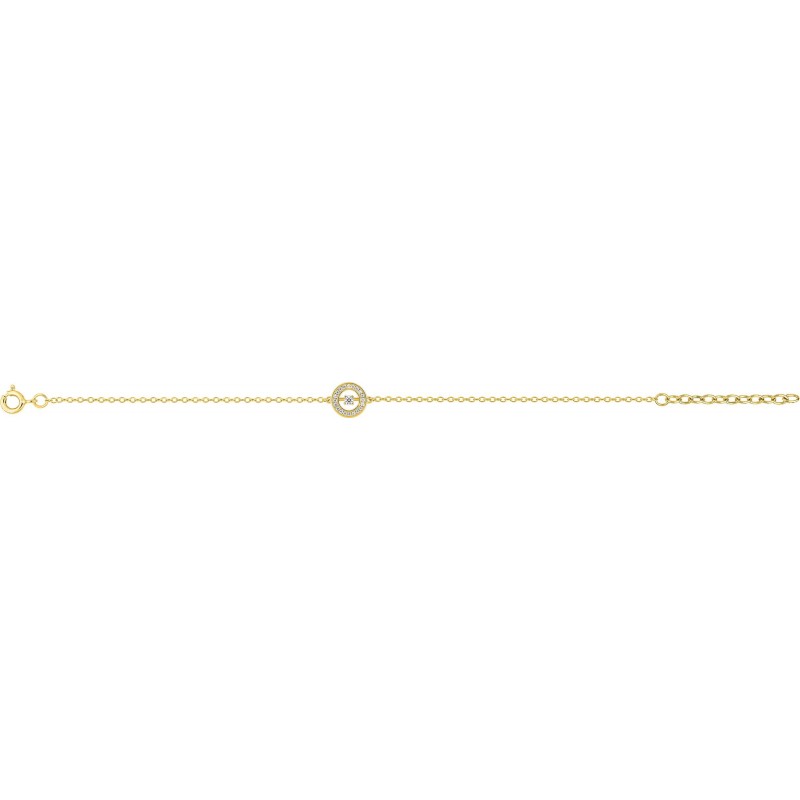 Bracelet en plaque or sertis d'oxydes de zirconium sur chaine. Fermoir anneau ressort. Longueur ajustable de 16cm à 18cm.