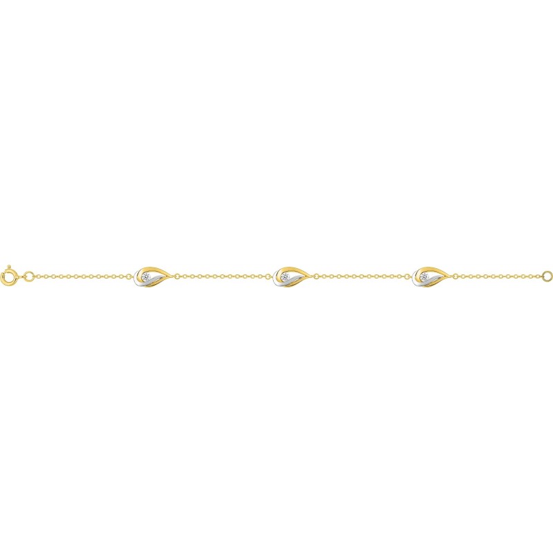 Bracelet en plaque or serti clos d'oxydes de zirconium. Fermoir mousqueton. Longueur ajustable à 17cm et 18cm.