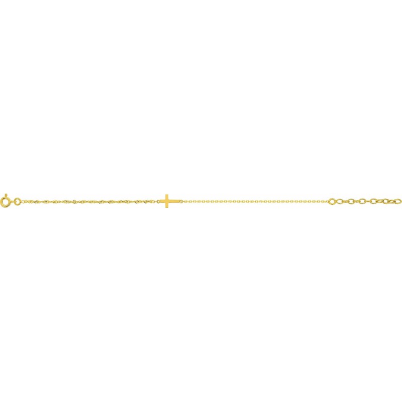 Bracelet en plaque or avec croix. Fermoir anneau ressort. Longueur ajustable de 17cm à 19cm.