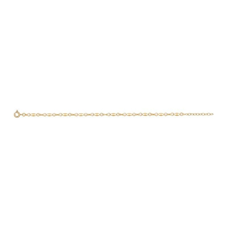 Bracelet en plaque or sertis d'oxydes de zirconium. Fermoir anneau ressort. Longueur ajustable de 18cm à 20cm.