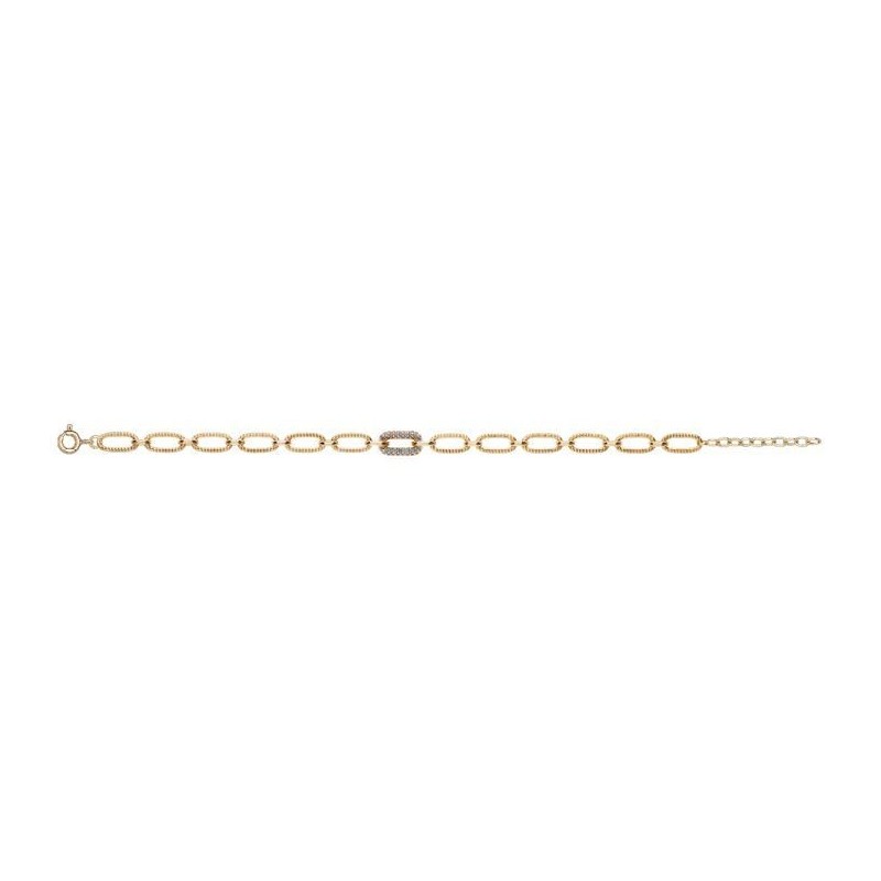 Bracelet en plaque or sertis d'oxydes de zirconium bleus. Fermoir anneau ressort. Longueur ajustable de 16cm à 19cm.