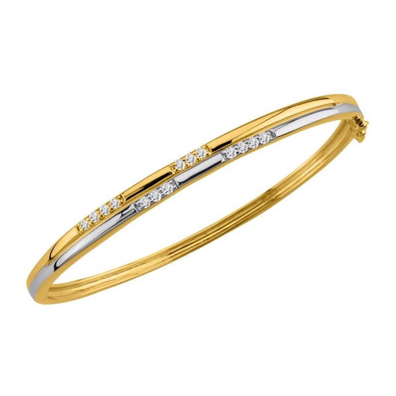 Bracelet en plaque or rigide bicolore sertis d'oxydes de zirconium. Fermoir huit de sécurité. Taille unique (diam. 63mm).