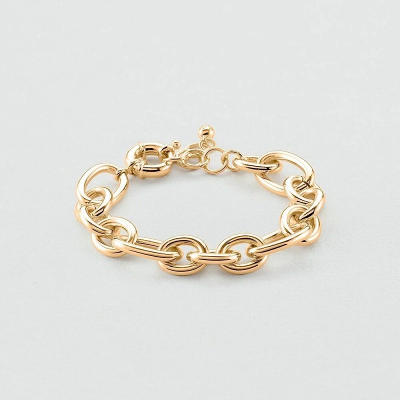 Bracelet AGATHA en plaque or avec grosse mailles. Fermoir mousqueton. Longueur ajustable de 17.5cm à 20.5cm.