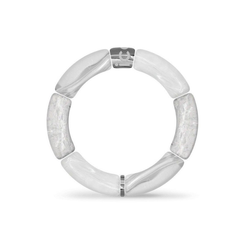 Bracelet ICE WATCH en acrylique blanc et acier sur fil élastique. Longueur 18cm.