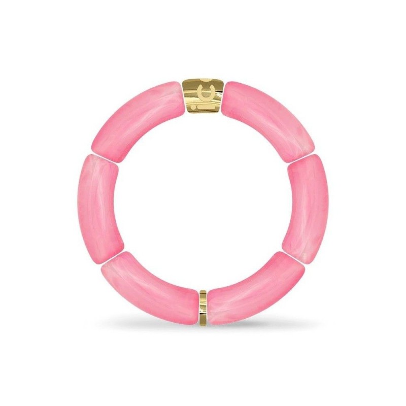 Bracelet ICE WATCH en acrylique rose et acier doré sur fil élastique. Longueur 18cm.