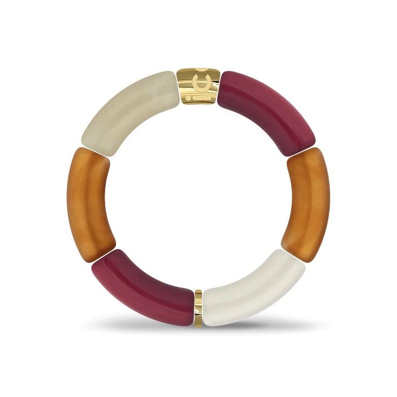 Bracelet ICE WATCH en acrylique marron, beige et bordeaux et acier doré sur fil élastique. Longueur 18cm.