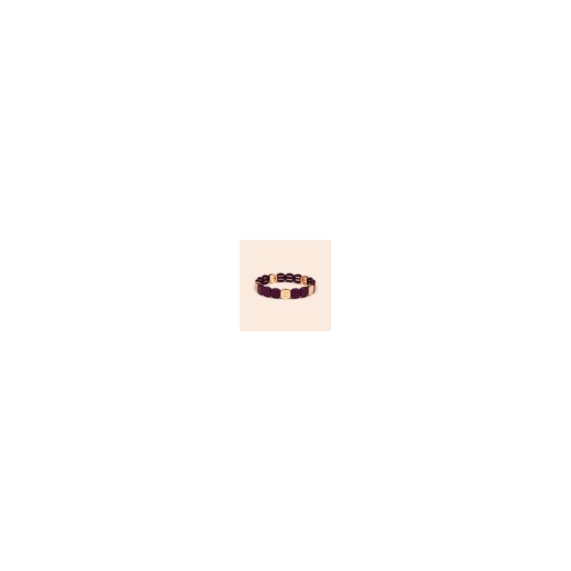 Bracelet SIMONE A BORDEAUX en métal émaillé prune sur fil élastique. Longueur 20cm.