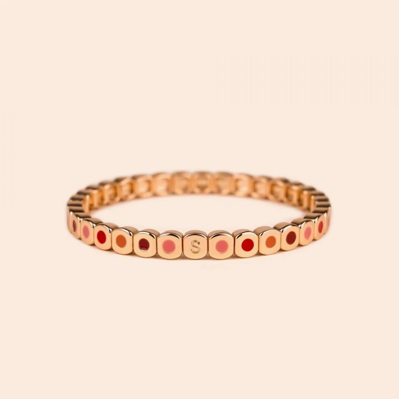 Bracelet SIMONE A BORDEAUX en métal émaillé doré, rouge et rose sur fil élastique. Longueur 18cm.