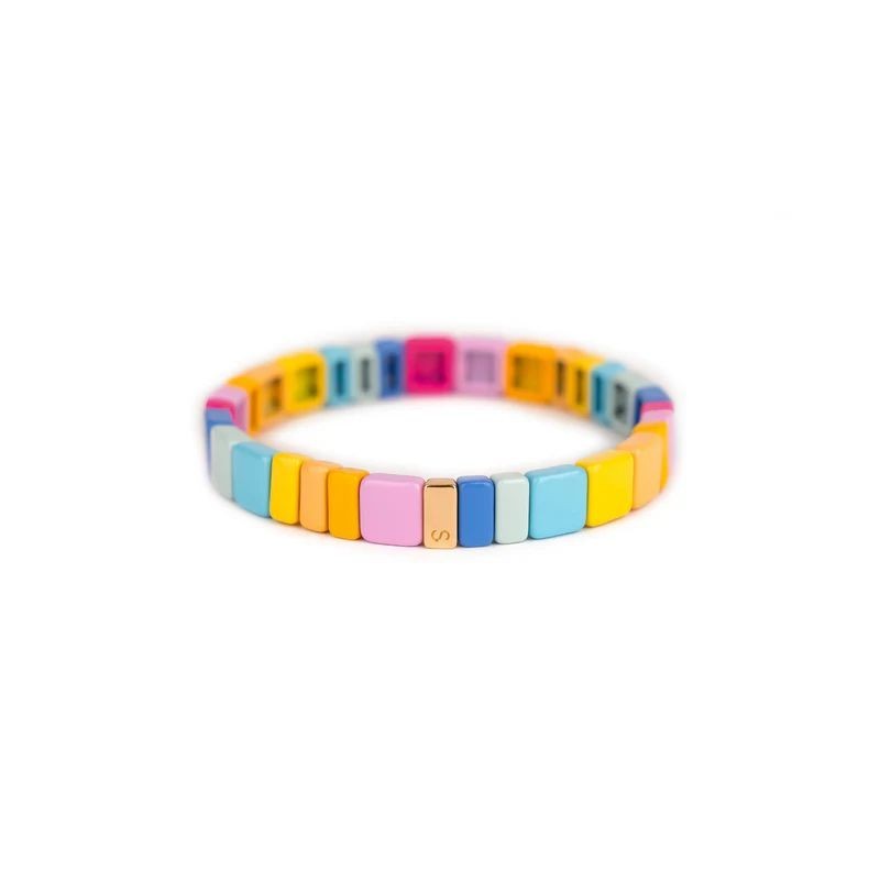 Bracelet SIMONE A BORDEAUX en métal émaillé multicolore sur fil élastique. Longueur 18cm.