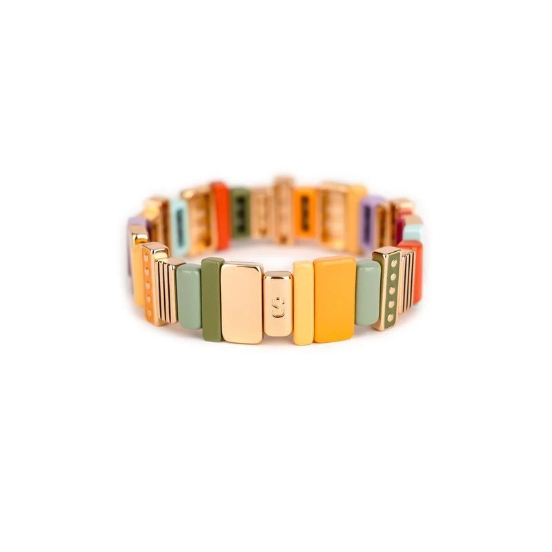 Bracelet SIMONE A BORDEAUX en métal émaillé multicolore sur fil élastique. Longueur 18cm.