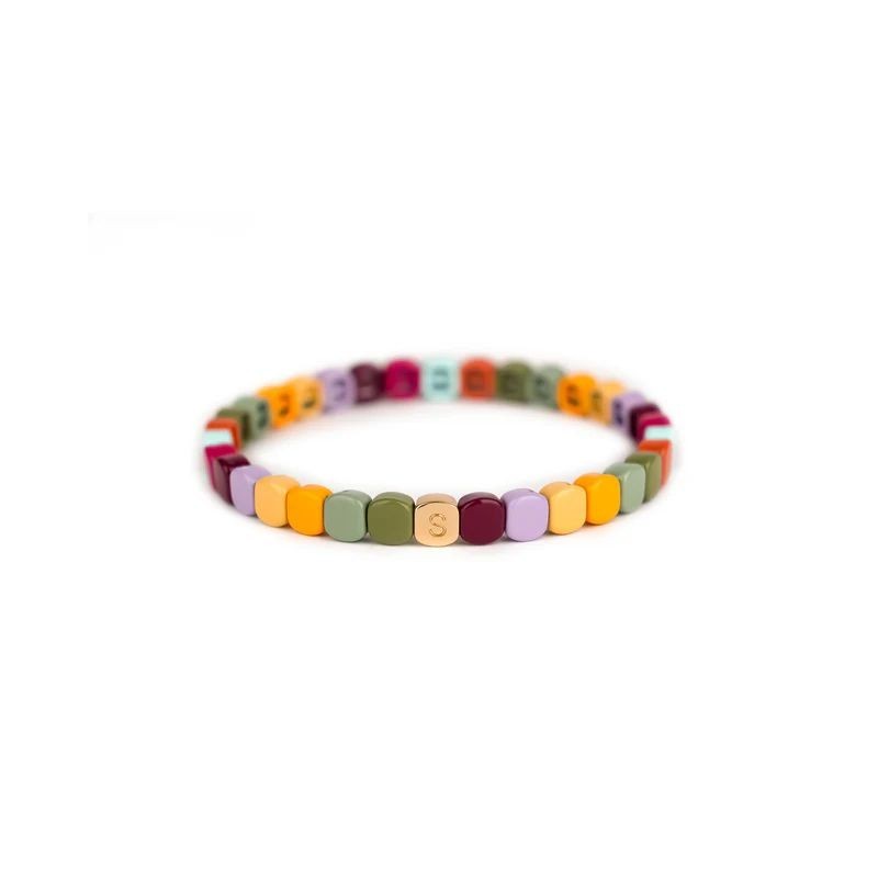 Bracelet SIMONE A BORDEAUX en métal émaillé multicolore sur fil élastique. Longueur 18cm.