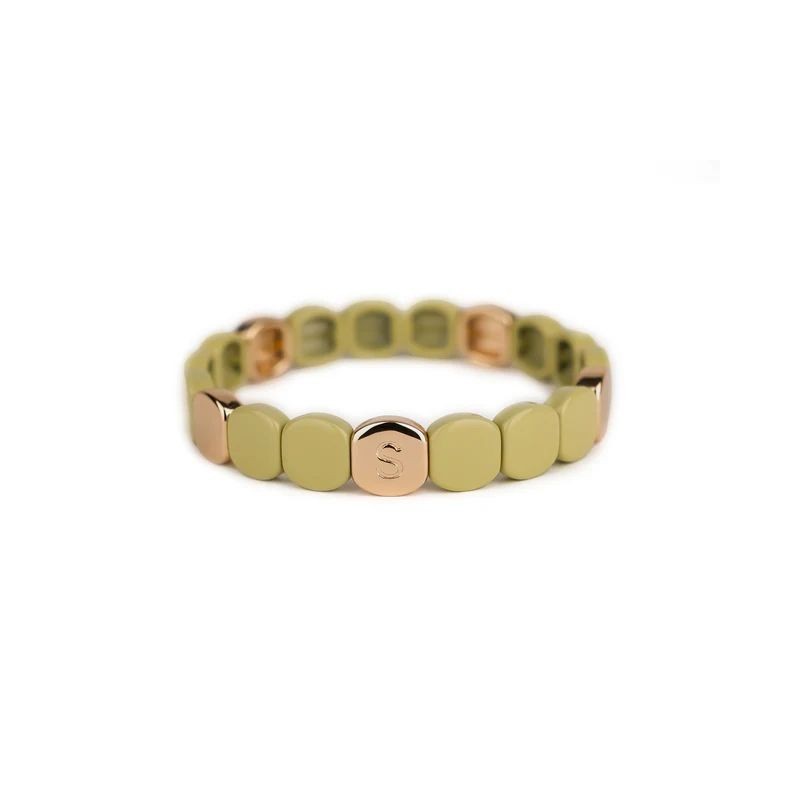 Bracelet SIMONE A BORDEAUX en métal émaillé vert pistache sur fil élastique. Longueur 18cm.