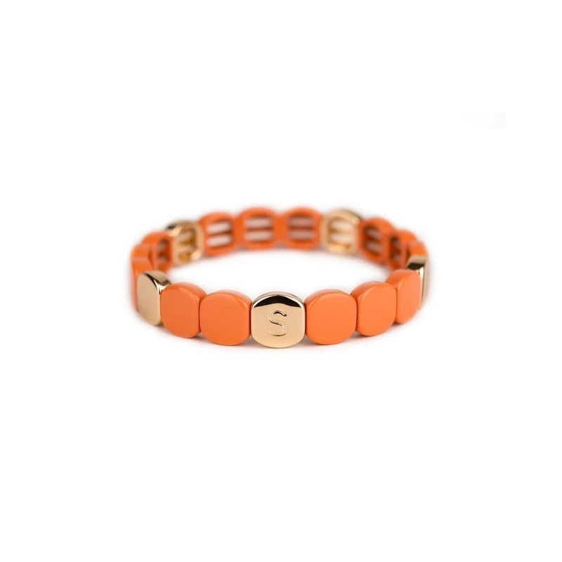 Bracelet SIMONE A BORDEAUX en métal émaillé orange papaye sur fil élastique. Longueur 18cm.