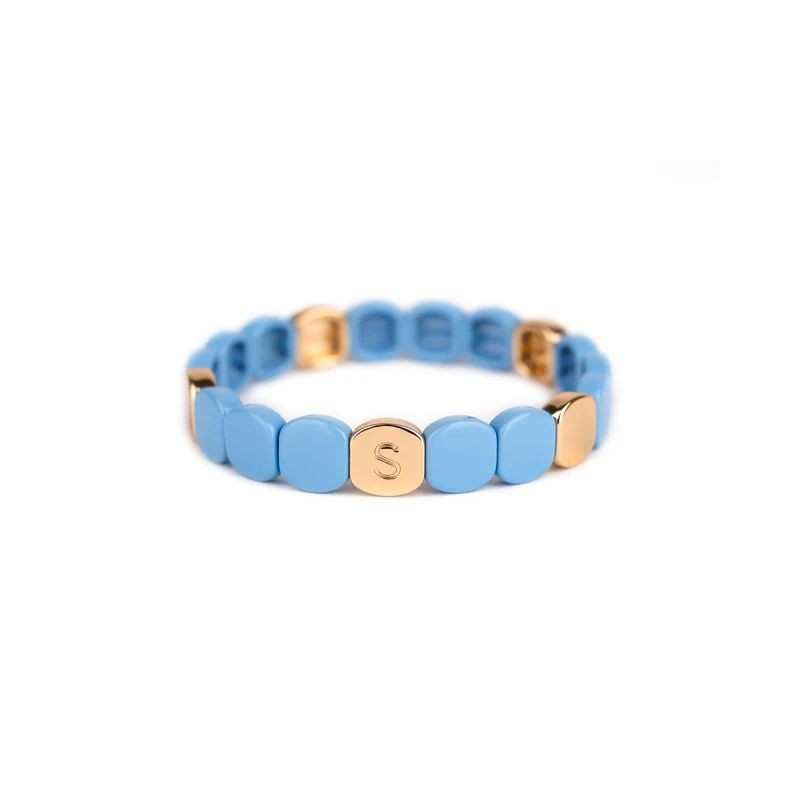 Bracelet SIMONE A BORDEAUX en métal émaillé bleu lin sur fil élastique. Longueur 18cm.
