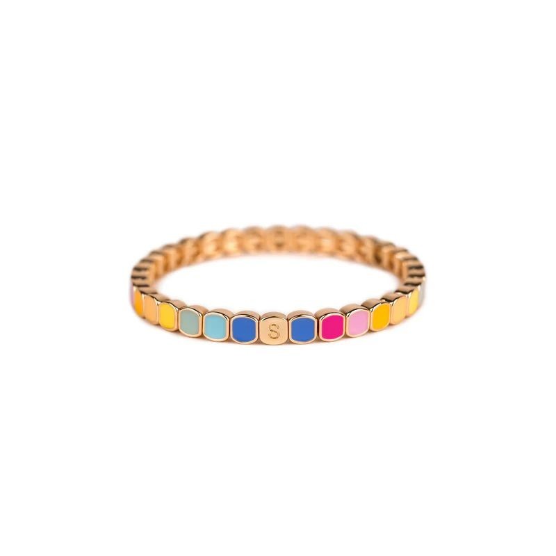 Bracelet SIMONE A BORDEAUX en métal émaillé multicolore sur fil élastique. Longueur 18cm.