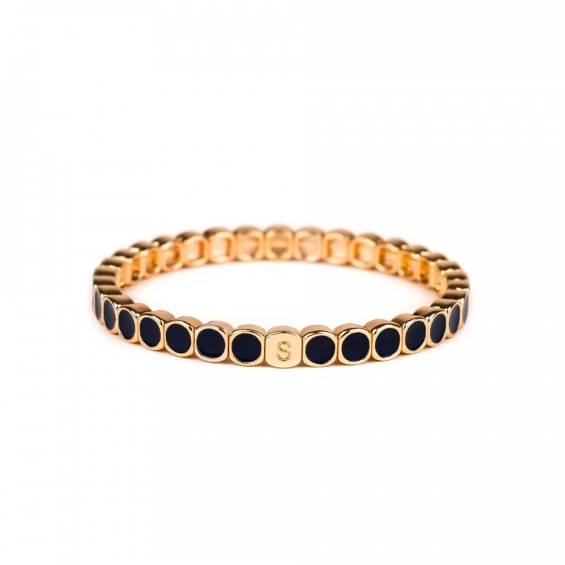 Bracelet SIMONE A BORDEAUX en métal émaillé encre sur fil élastique. Longueur 18cm.
