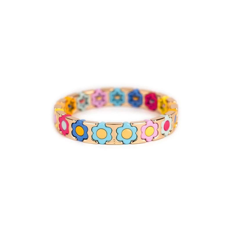 Bracelet SIMONE A BORDEAUX en métal émaillé multicolore sur fil élastique. Longueur 18cm.