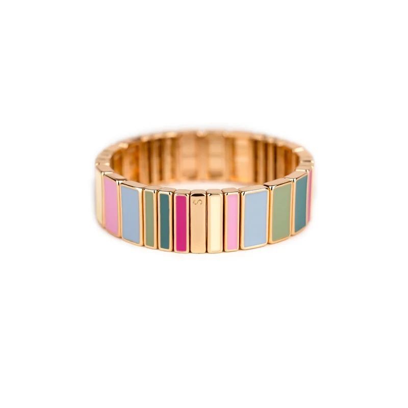 Bracelet SIMONE A BORDEAUX en métal émaillé multicolore pastel sur fil élastique. Longueur 18cm.