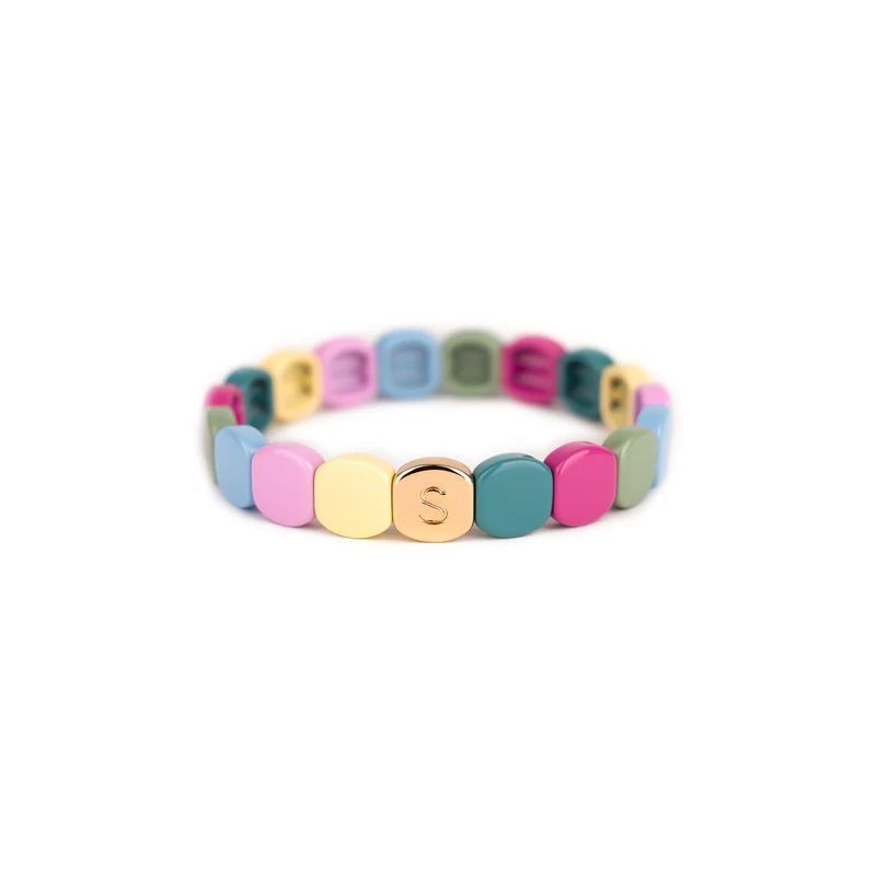 Bracelet SIMONE A BORDEAUX en métal émaillé multicolore pastel sur fil élastique. Longueur 18cm.