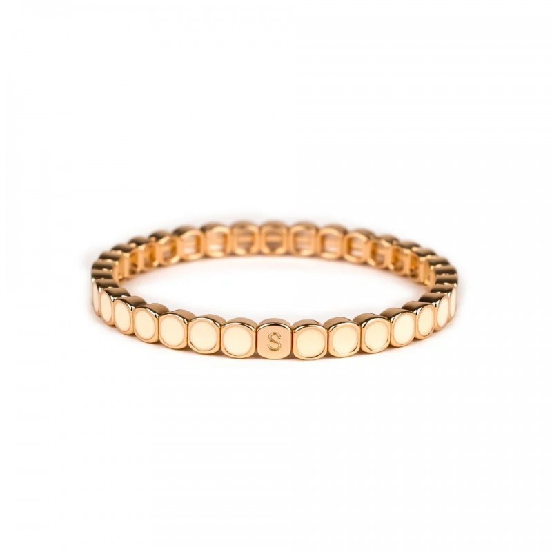 Bracelet SIMONE A BORDEAUX en métal émaillé beige sur fil élastique. Longueur 18cm.
