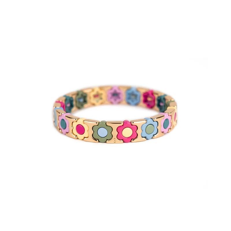 Bracelet SIMONE A BORDEAUX en métal émaillé multicolore pastel sur fil élastique. Longueur 18cm.