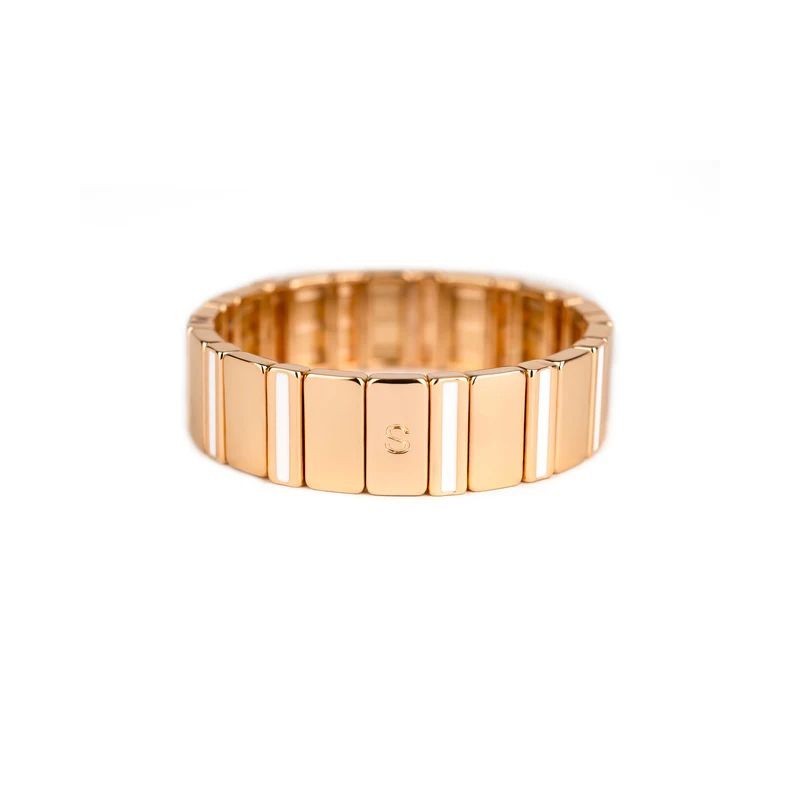 Bracelet SIMONE A BORDEAUX en métal émaillé blanc sur fil élastique. Longueur 18cm.