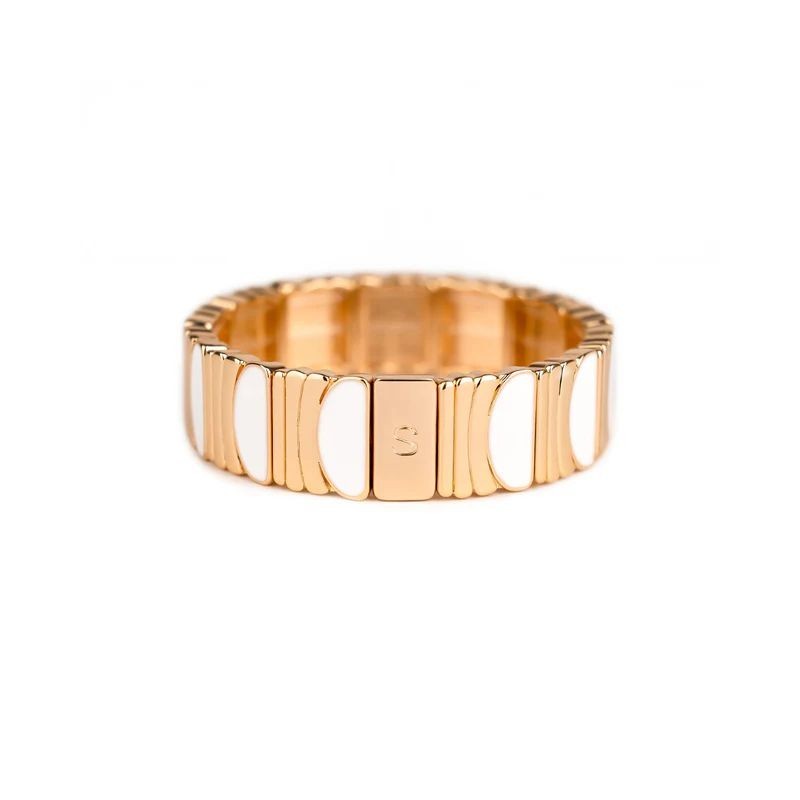 Bracelet SIMONE A BORDEAUX en métal émaillé blanc sur fil élastique. Longueur 18cm.