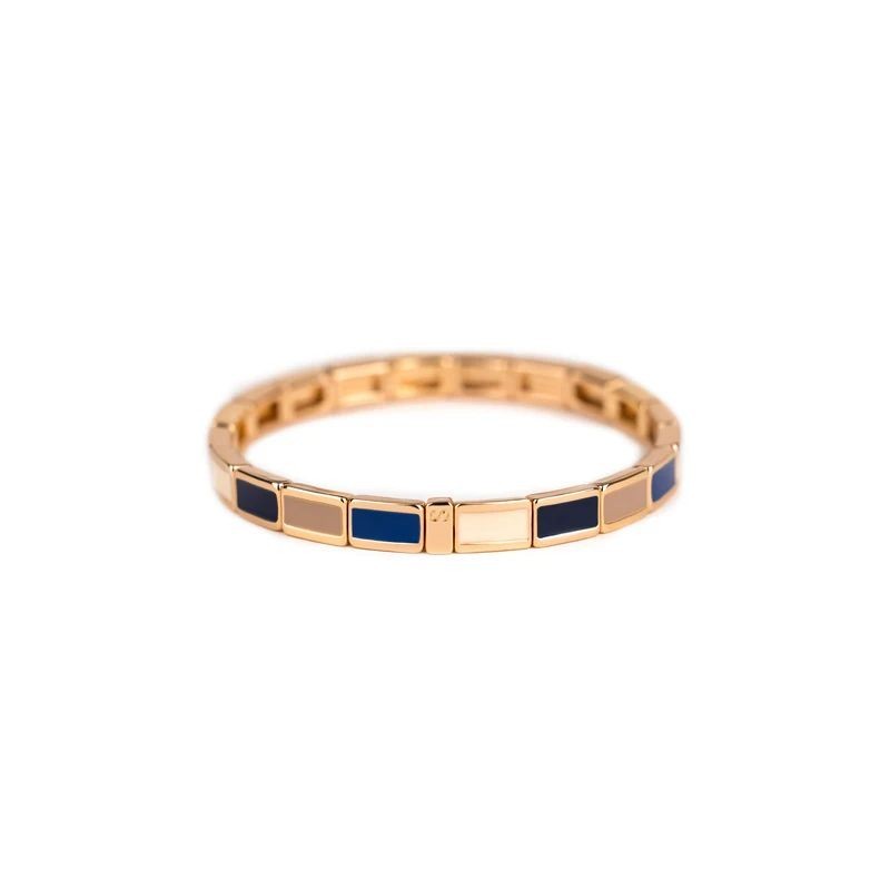 Bracelet SIMONE A BORDEAUX en métal émaillé encre, beige et bleu sur fil élastique. Longueur 18cm.