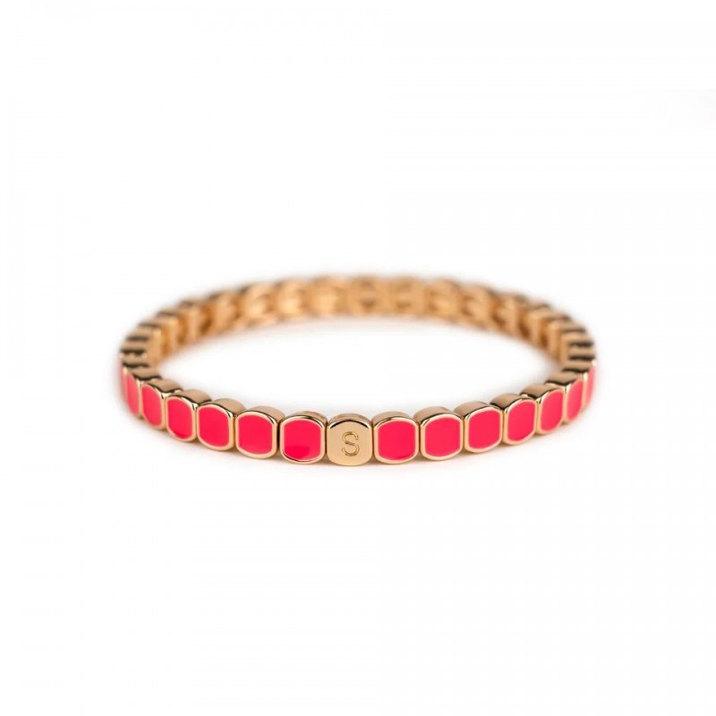 Bracelet SIMONE A BORDEAUX en métal émaillé rose éclat sur fil élastique. Longueur 18cm.