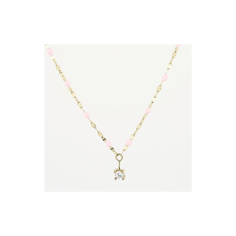 Collier ZAG BIJOUX en acier doré avec résine rose et strass sur chaine. Fermoir mousqueton. Longueur ajustable de 38cm à 43cm.