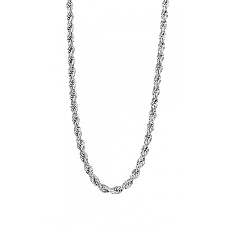 Collier LOTUS en acier tressé. Fermoir mousqueton. Longueur ajustable de 45cm à 50cm.