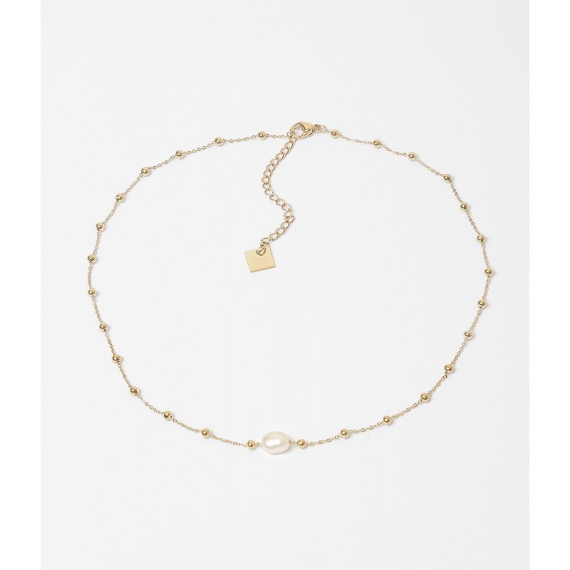 Collier ZAG BIJOUX en acier doré avec perles de culture sur chaine. Fermoir mousqueton. Longueur ajustable de 38cm à 43cm.