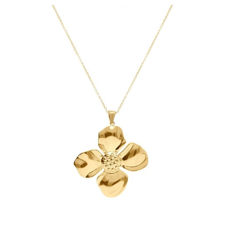 Collier en acier doré avec pendentif en forme de fleurs sur chaine. Fermoir mousqueton. Longueur ajustable de 40cm à 45cm.