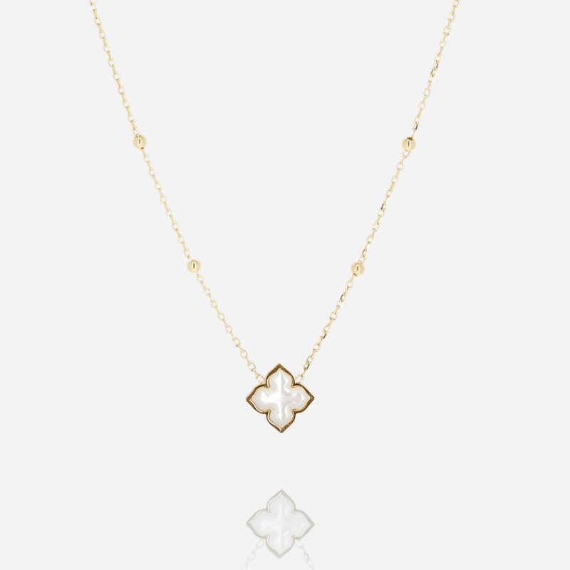 Collier ZAG BIJOUX en acier doré avec pendentif nacre sur chaine. Fermoir mousqueton. Longueur ajustable de 38cm à 43cm.